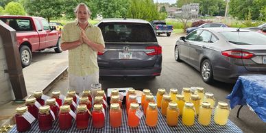 Honey products of all sorts, beeswax, candles, skincare products, freeze dried products, honey butter, cut flowers, and more. Saturday and Wednesday
