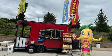 All of your carnival food favorites! Lemonades, kettle corn, cotton candy, breakfast bowls, biscuits and gravy, coffee, and other snacks.